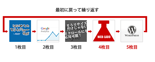 簡単に図にすると下の様になります。また最後の画像を表示した後は、最初の画像に戻りそれを繰り返します。